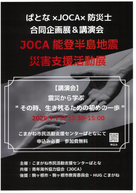 8/23(土)~9/10(水) ぱとなにて、青年海外協力協会(JOCA)さん共催にて「JOCA能登半島地震災害支援活動展」を開催しています。ぜひ見に来てください。