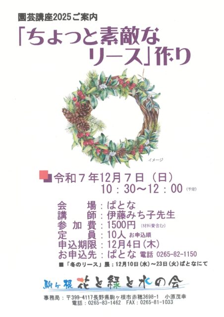 「ちょっと素敵なリース」作り開催のお知らせ