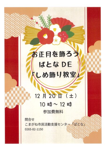 「お正月を飾ろう ぱとな DE しめ縄教室」開催のお知らせ