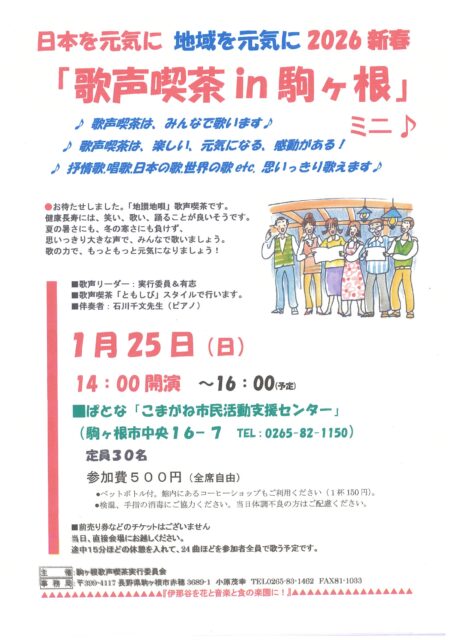 1/25(日)「歌声喫茶 in 駒ヶ根」