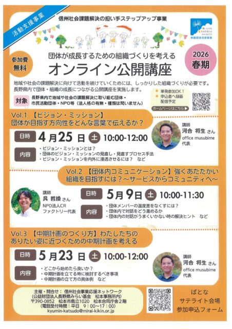ぱとなにて、団体が成長するための組織づくりを考える「オンライン公開講座」を開催しています。
